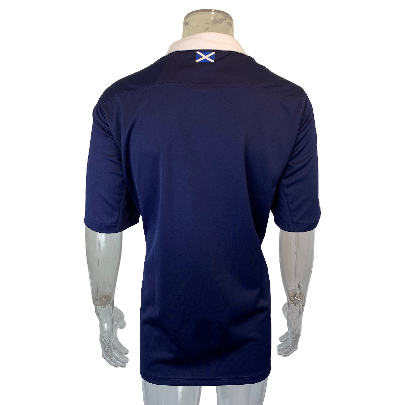 This is a very big fitting 2012 Scotland jersey. Tagged 3XL the jersey is in new condition with no flaws. It was not a great 2014 Six Nations for Scotland only managing a single win over Italy 21-20. Scotland rugby has been on the up since then however they are still chasing their first Six Nations win since 1999.