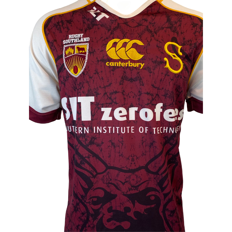 Southland rugby jerseys enjoy immense popularity, frequently topping sales among all New Zealand provincial teams’ merchandise. The 2014 season’s version prominently displays the Rugby Southland emblem and is in excellent condition.