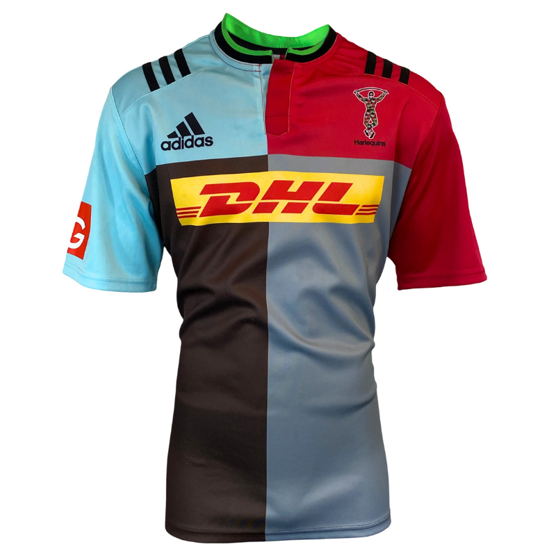 Harlequins have remained true to their club color’s keeping the similar design throughout the clubs history. This sharp looking jersey is in very good condition.