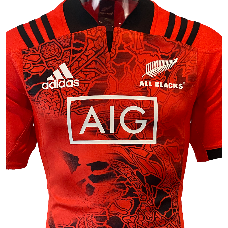 Add a standout piece to your collection with this striking 2017 All Blacks training jersey. Featuring an eye-catching orange and black design and the official AIG sponsor logo, this jersey perfectly balances modern style with All Blacks heritage.