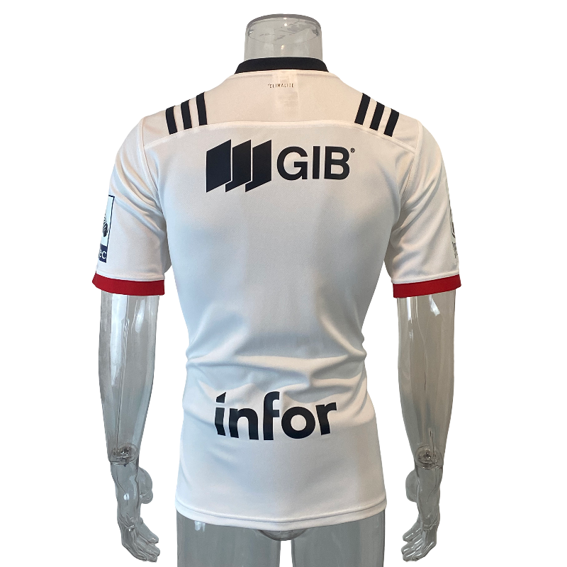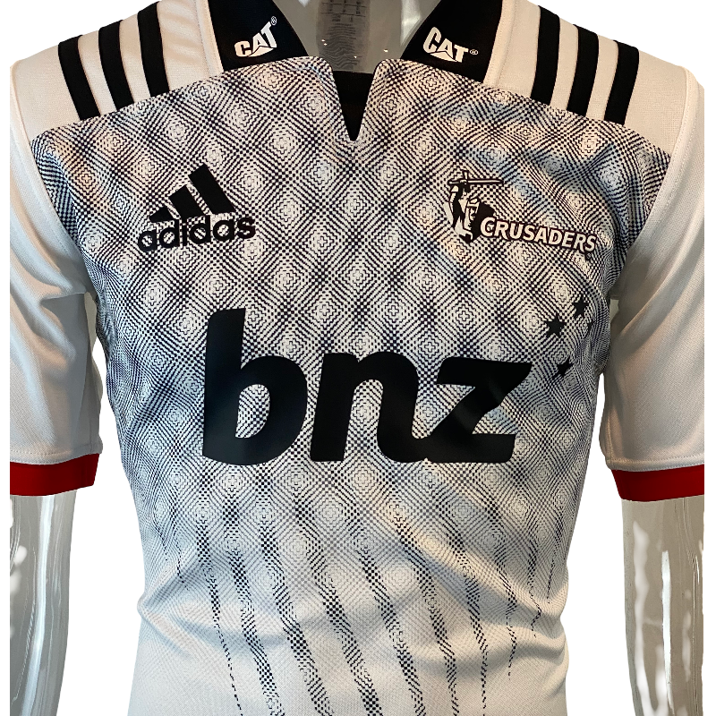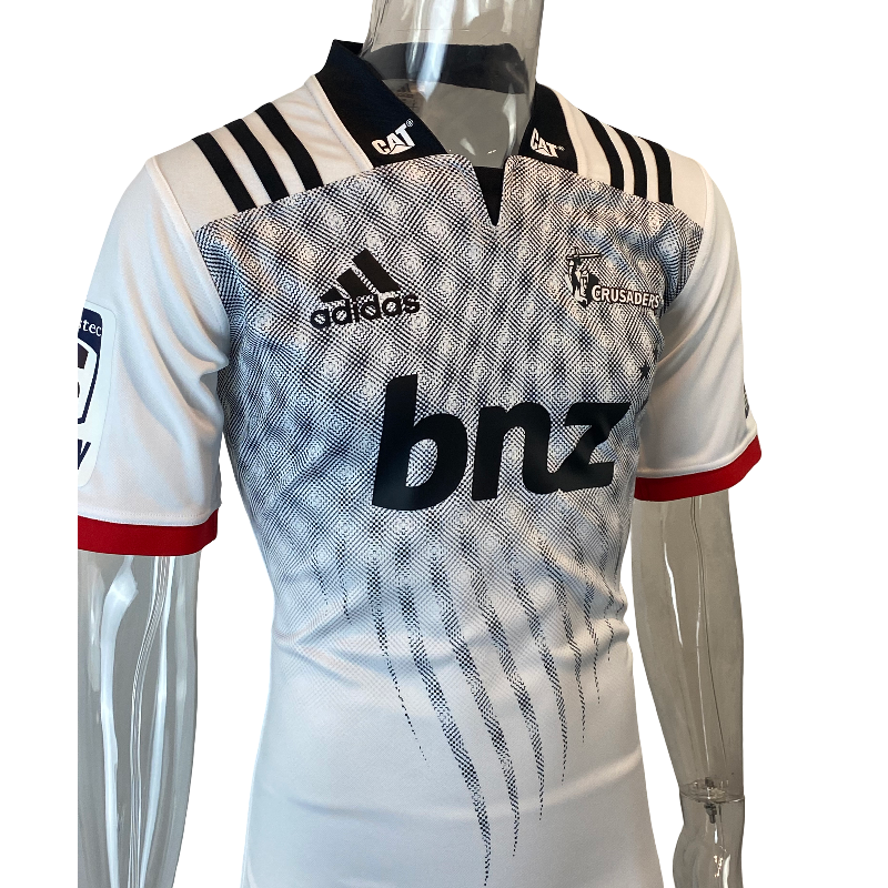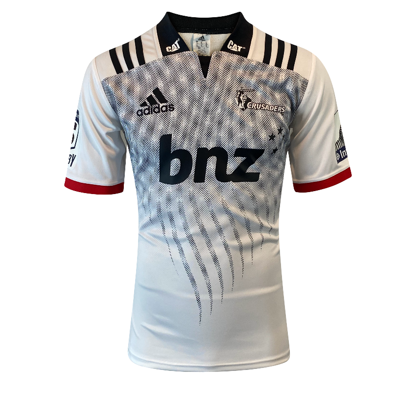 This 2018 Crusaders alternate rugby jersey, made by Adidas, delivers a crisp white design accented with the BNZ sponsor logo across the chest. A sharp, modern look that stood out on the field, it captures the professional quality and clean styling Adidas is known for.