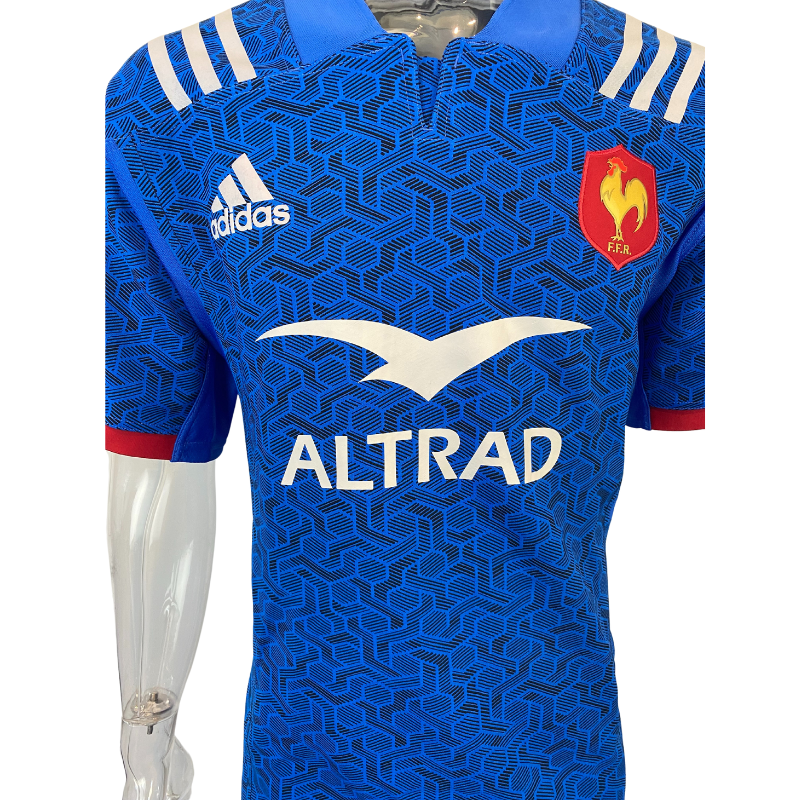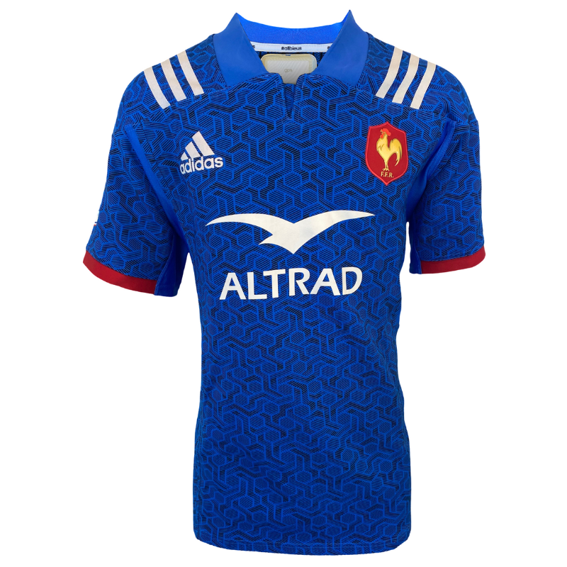 This is a test prepared jersey from the 2018 season that includes a GPS pouch. This vintage rugby jersey is unnumbered and has no embroidery, but features all the variations of a players jersey compared to a replica version. This jersey was prepared for a front row player, and as a player’s size 12, its a lot bigger than most player issue jerseys.