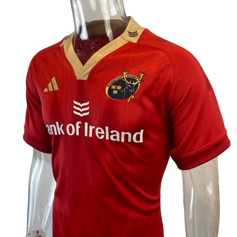 A modern classic from one of rugby’s most passionate provinces, this 2023 Munster home jersey delivers the iconic red look that’s recognised around the world. Produced by adidas, it features a clean, sharp design with subtle detailing and the Munster crest sitting proudly on the chest, representing one of the most storied clubs in European rugby.