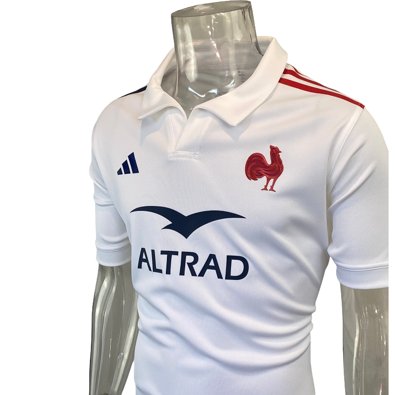 This 2025 France alternate jersey is a sleek modern design from Adidas, showcasing the clean lines and minimalist style that define the new era of Les Bleus kits. The crisp white base is paired with the iconic French rooster crest and the updated Adidas performance logo, creating a sharp, contemporary look both on and off the field.
