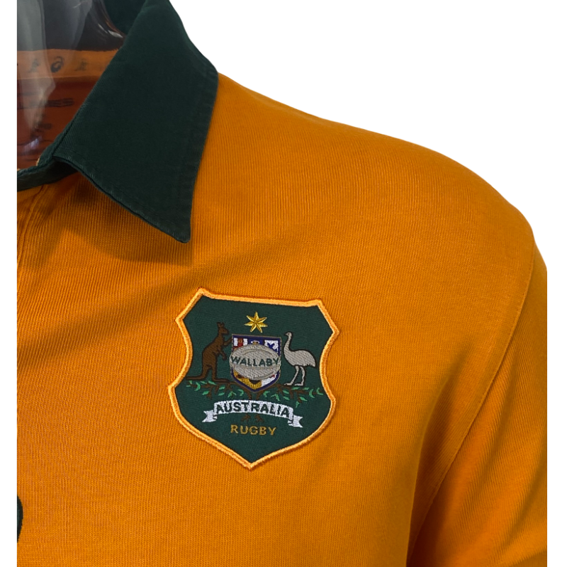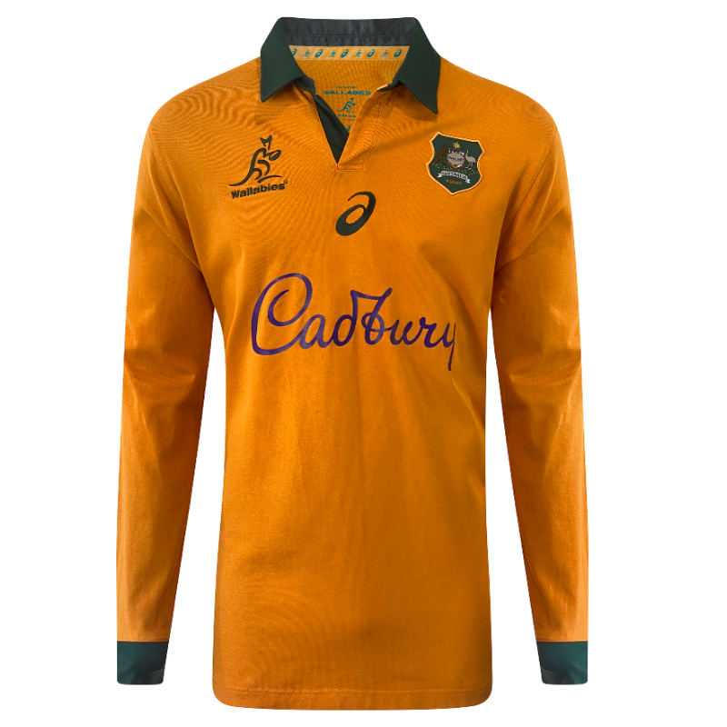 A modern classic, this 2025 Wallabies long sleeve jersey by ASICS brings back the iconic look of the early 1990s with a fresh, high-quality finish. Featuring the return of true Wallaby gold paired with green detailing, this design pays homage to the legendary 1991–1995 era while delivering a clean, updated fit. The embroidered Wallabies crest and classic collar complete the heritage feel, making it a standout piece for both collectors and fans.
