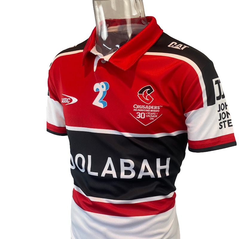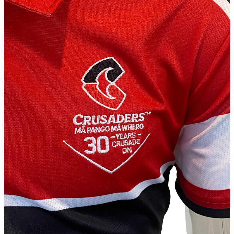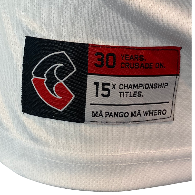 The jersey features detailed embroidery throughout, including a commemorative 30-year Crusaders crest on the chest. A Super Rugby 30-year anniversary sleeve patch is also included, marking three decades of the competition that helped define the Crusaders legacy.