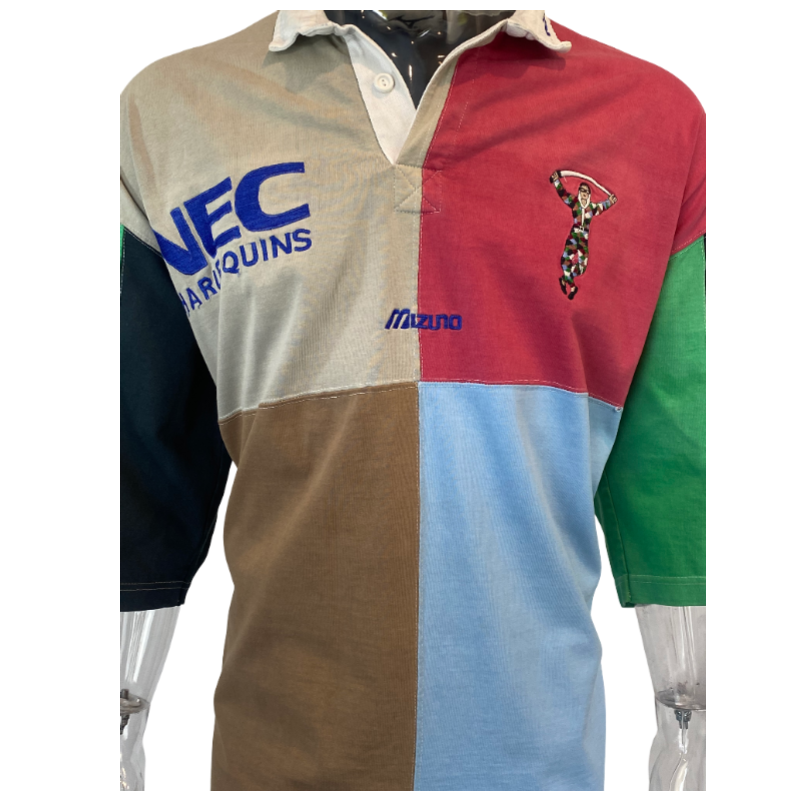 Mizuno didn’t make to many jersey but had the popular Harlequin club for a couple of years. The sizing of these jerseys is understated so while it is tagged large it does fit more XXL to XXXL. The jersey is in very good condition with just a small hole on the front.
